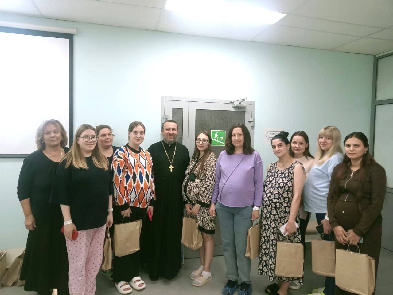 Ответственный в 3-м Коломенском благочинии за защиту семьи, материнства и детства, настоятель Богоявленского храма города Коломны иерей Виктор Волков и координатор Православного медико-просветительского центра защиты материнства и детства «Жизнь» при Отделе по церковной благотворительности и социальному служению Коломенской епархии врач-педиатр Л. Б. Дядюра поздравили всех присутствующих и вручили роженицам памятные подарки.